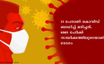 തിരുവനന്തപുരം : സംസ്ഥാനത്ത് ഞായറാഴ്ച (27/09/2020) വൈകിട്ടാകുമ്പോഴേക്ക് 7445 പേർക്ക് കോവിഡ് സ്ഥിരീകരിച്ചു. ഇതുവരെയുള്ള എറ്റവും ഉയർന്ന പ്രതിദിനരോഗവ്യാപനമാണിത്. 21 പേരാണ് കൊവിഡ് ബാധിച്ച് മരിച്ചത്. 6965 പേർക്ക് സമ്പർക്കത്തിലൂടെയാണ് രോഗം. 3391 പേർ രോഗമുക്തരായിട്ടുണ്ട്. 56709 പേർ ചികിത്സയിലുണ്ട്. 54493 …