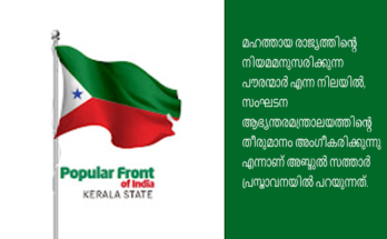 പോപ്പുലർ ഫ്രണ്ട് ഓഫ് ഇന്ത്യ കേരള ഘടകം പിരിച്ചുവിട്ടതായി സംസ്ഥാന ജനറൽ സെക്രട്ടറി അബ്ദുൽ സത്താർ