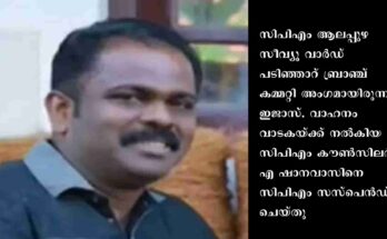 ആലപ്പുഴ: കൊല്ലത്തെ പാൻമസാല കടത്ത് കേസിൽ പ്രതിയായ ഇജാസിനെ സിപിഎം പാർട്ടിയിൽ നിന്ന് പുറത്താക്കി. സിപിഎം ആലപ്പുഴ സീവ്യൂ വാർഡ് പടിഞ്ഞാറ് ബ്രാഞ്ച് കമ്മറ്റി അംഗമായിരുന്നു ഇജാസ്. വാഹനം വാടകയ്ക്ക് നൽകിയ സിപിഎം കൗൺസിലർ എ ഷാനവാസിനെ സിപിഎം സസ്പെൻഡ് ചെയ്തു. …