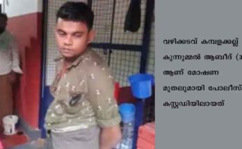 നിലമ്പൂര്‍: ക്ഷേത്ര മുതലുമായി യുവാവ് പോലീസ് കസ്റ്റഡിയില്‍ . വഴിക്കടവ് കമ്പളക്കല്ല് കുന്നുമ്മല്‍ ആബീദ് (35) ആണ് മോഷണ മുതലുമായി പോലീസ് കസ്റ്റഡിയിലായത്. നിലമ്പൂര്‍ മുമ്മുളളി കുട്ടിച്ചാത്തന്‍ കാവിലാണ് സംഭവം. ക്ഷേത്രത്തില്‍ മോഷിടിക്കാനെത്തിയ യുവാവ് ഭണ്ഡാരവും ഓഫീസും കുത്തിത്തുറന്ന് ക്ഷേത്ര മുതലുകള്‍ …