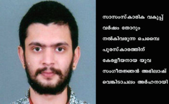 ഈ വര്ഷത്തെ ചെമ്പൈ പുരസ്കാരം അഭിലാഷ് വെങ്കിടാചലത്തിന് Read More