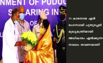 പുതുച്ചേരി: കര്ണാടകയ്ക്കുശേഷം ദക്ഷിണേന്ത്യയിലെ രണ്ടാമത്തെ എന്ഡിഎ സര്ക്കാര് പുതുച്ചേരിയില് അധികാരമേറ്റു. മുഖ്യമന്ത്രിയായി എന്.ആര് കോണ്ഗ്രസ് നേതാവ് എന് രംഗസ്വാമി സത്യപ്രതിജ്ഞ ചെയ്തു. കോവിഡ് പ്രോട്ടോകോള് പാലിച്ച് രാജ്ഭവനില് നടന്ന ലളിതമായ ചടങ്ങില് ലഫ്. ഗവര്ണര് തമിഴിസൈ സൗന്ദരരരാജന് സത്യവാചകം ചൊല്ലിക്കൊടുത്തു. 71 …