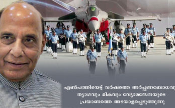 ന്യൂ ഡൽഹി: 88-ാമത് വ്യോമസേനാ ദിനത്തിൽ രാജ്യ രക്ഷാ മന്ത്രി ശ്രീ രാജ്‌നാഥ് സിംഗ് വ്യോമ സേനാംഗങ്ങൾക്കും അവരുടെ കുടുംബാംഗങ്ങൾക്കും ആശംസകൾ നേർന്നു. “‘എൺപത്തിയെട്ട് വർഷത്തെ അർപ്പണബോധവും ത്യാഗവും മികവും വ്യോമസേനയുടെ പ്രയാണത്തെ അടയാളപ്പെടുത്തുന്നു. ഇന്ന് ഇന്ത്യൻ വ്യോമസേന ഗണനീയമാം വിധം …
