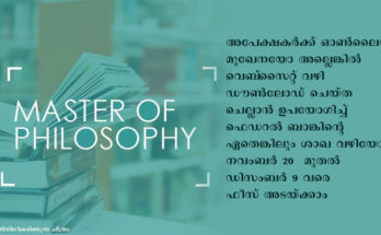 എം.ഫിൽ കോഴ്സുകളിലേക്ക് അപേക്ഷ ക്ഷണിച്ചു Read More