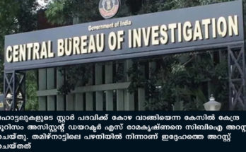 ഹോട്ടലുകളുടെ സ്റ്റാർ പദവിക്ക് കോഴ, കേന്ദ്ര ടൂറിസം അസിസ്റ്റന്റ് ഡയറക്ടർ എസ് രാമകൃഷ്ണൻ അറസ്റ്റിൽ , കൊച്ചിയിലുൾപ്പടെ സി ബി ഐ റെയ്ഡ് Read More