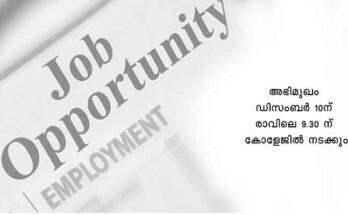 കോഴിക്കോട്: കേരള കാര്ഷിക സര്വകലാശാലയുടെ തവനൂർ കേളപ്പജി കോളേജ് ഓഫ് അഗ്രികള്ച്ചറല് എഞ്ചിനീയറിംഗ് ആന്ഡ് ടെക്നോളജിയിൽ വിവിധ അസിസ്റ്റന്റ് പ്രൊഫസര് തസ്തികകളിലേക്ക് കരാർ വ്യവസ്ഥയിൽ ഉദ്യോഗാര്ത്ഥികളെ തെരഞ്ഞെടുക്കുന്നതിനുള്ള അഭിമുഖം ഡിസംബര് 10ന് രാവിലെ 9.30 ന് കോളേജില് നടക്കുമെന്ന് ഡീന് ഓഫ് …
