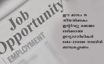 തൃപ്പൂണിത്തുറ ഗവ ആയുര്വേദ കോളേജില് ഓണറേറിയം വ്യവസ്ഥയില് 2022-23 സാമ്പത്തിക വര്ഷത്തേക്ക് ഒരു സീനിയര് റിസര്ച്ച് ഫെല്ലോ, ക്രിയാശരീര വകുപ്പ്, യോഗ്യത ക്രിയാശരീര എം.ഡി, ഒരു സീനിയര് റിസര്ച്ച് ഫെല്ലോ, സ്വസ്ഥവൃത്ത വകുപ്പ്, യോഗ്യത സ്വസ്ഥ വൃത്ത എം.ഡി വേതനം 35000 …