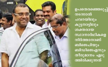 .ആലപ്പുഴ: ബി.ഡി.ജെ.എസ്. അംഗങ്ങളെ ഇടതുപക്ഷത്തേക്കും സി.പി.എമ്മിലേക്കും സ്വാഗതം ചെയ്യുകയാണെന്ന് സി.പി.എം. ജില്ലാ സെക്രട്ടറി ആർ. നാസർ. .പിന്നാക്കക്കാരുടെ ക്ഷേമത്തിനായാണ് ബി.ഡി.ജെ.എസ്. രൂപം കൊണ്ടത്. എന്നാൽ, മുന്നാക്കക്കാർക്കും പ്രാധാന്യം നൽകുന്ന എൻ.ഡി.എ.യിൽ അവർക്കു നീതി കിട്ടുന്നില്ല. .മുന്നാക്കക്കാരുടെ അടിമകളായി മാറ്റാനാണു നോക്കിയത്. സവർണരായ …