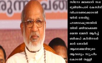 ന്യൂഡല്ഹി: സിറോ മലബാര് സഭ ഭൂമിയിടപാട് കേസില് വിചാരണക്കോടതിയില് നേരിട്ടു ഹാജരാകുന്നതില് നിന്ന് ഒഴിവാക്കണമെന്ന മേജര് ആര്ച്ച് ബിഷപ് കര്ദിനാള് മാര് ജോര്ജ് ആലഞ്ചേരിയുടെ ആവശ്യം സുപ്രീം കോടതി തള്ളി. 14/12/2022 കാക്കനാട് മജിസ്ട്രേറ്റ് കോടതിയില് ഹാജരാകുന്നതില്നിന്ന് ഇളവു നല്കണമെന്ന ആവശ്യമാണ് …