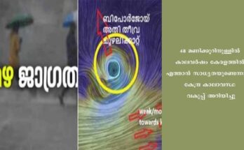 തിരുവനന്തപുരം: കേരളത്തിൽ 2023 ജൂൺ 11 വരെ ഇടി/ മിന്നൽ/കാറ്റോട് കൂടിയ മഴയ്ക്ക് സാധ്യതയെന്ന് മുന്നറിയിപ്പ്. 48 മണിക്കൂറിനുള്ളിൽ കാലവർഷം കേരളത്തിൽ എത്താൻ സാധ്യതയുണ്ടെന്നാണ് കേന്ദ്ര കാലാവസ്ഥ വകുപ്പ് അറിയിച്ചു. മധ്യ-കിഴക്കൻ അറബിക്കടലിന് മുകളിലുള്ള ബിപോർജോയ് തീവ്രചുഴലിക്കാറ്റ് അതി തീവ്രചുഴലിക്കാറ്റായി ശക്തി …