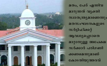 മതംമാറിയ വ്യക്തികള്ക്ക് ഔദ്യോഗിക രേഖകളില് മതം, പേര് എന്നിവ മാറ്റാന് മതസംഘടനകളുടെ സര്ട്ടിഫിക്കറ്റ് ഇനി ആവശ്യമില്ല Read More