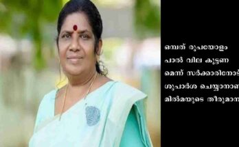 പാൽ വില കൂട്ടുമെന്ന് മന്ത്രി ജെ ചിഞ്ചുറാണി Read More