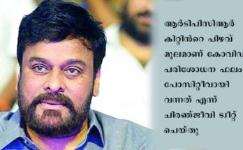ചിരഞ്ജീവിക്ക് കോവിഡ് ഇല്ല. ആര്ടിപിസിആര് കിറ്റിന്റെ പിഴവ് മൂലു പോസിറ്റീവ് റിസൽട്ട് ലഭിച്ചുവെന്ന് താരം Read More