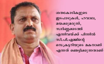 എ കെ ജി സെൻ്ററും ക്ലിഫ് ഹൗസും കളങ്കപ്പെട്ടൂവെന്ന് കെ .സുരേന്ദ്രൻ , സ്വർണക്കള്ളക്കടത്തും മയക്കുമരുന്നിടപാടും പരസ്പര സഹകരണത്തിലൂടെയെന്നും സുരേന്ദ്രൻ Read More