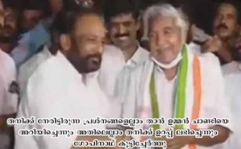 ഇടഞ്ഞു നിന്ന എവി ഗോപിനാഥിനെ പാതിരാത്രിയിലെത്തി ഉമ്മന് ചാണ്ടി അനുനയിപ്പിച്ചു , വെറും 15 മിനിറ്റിൽ Read More
