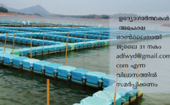 വയനാട് ജില്ലയില് ഫിഷറീസ് വകുപ്പില് അക്വാകള്ച്ചര് കോര്ഡിനേറ്റര് തസ്തികയില് നിയമനം നടത്തുന്നു. ഉദ്യോഗാര്ത്ഥകള് അപേക്ഷ ഓണ്ലൈനായി ജൂലൈ 31 നകം adfwyd@gmail.com എന്ന വിലാസത്തില് സമര്പ്പിക്കണം. യോഗ്യത: സ്റ്റേറ്റ് അഗ്രകള്ച്ചറല് യൂണിവേഴ്സിറ്റി/ഫിഷറീസ് യൂണിവേഴ്സിറ്റിയില് നിന്നുള്ള ബി.എഫ്.എസ്.സി ബിരുദം അല്ലെങ്കില് ഏതെങ്കിലും അംഗീകൃത …