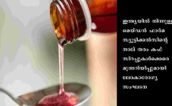 ഫാർമസ്യൂട്ടിക്കൽസിന്റെ നാല് തരം കഫ് സിറപ്പുകൾക്കെതിരെ മുന്നറിയിപ്പ് നൽകി ലോകാരോഗ്യ സംഘടന Read More