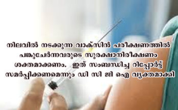കോവിഡ് വാക്സിന് പരീക്ഷണത്തിന് ആളുകളെ തെരഞ്ഞെടുക്കുന്നത് നിര്ത്തിവെക്കണമെന്ന് ഡി. സി .ജി .ഐ Read More
