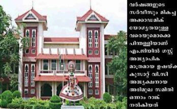 തിരുവനന്തപുരം: എം.ജി സർവകലാശാലാ പി.വി.സി ഡോ.സി.ടി അരവിന്ദകുമാർ നൽകിയ പ്രവൃത്തിപരിചയ സർട്ടിഫിക്കറ്റുമായി കുസാറ്റിലെ പ്രൊഫസർ അഭിമുഖത്തിൽ പങ്കെടുത്ത അദ്ദേഹത്തിന്റെ ഭാര്യ ഡോ.ഉഷയ്ക്ക് ലഭിച്ചത് 20 ൽ 19 മാർക്ക്. വർഷങ്ങളുടെ സർവീസും മികച്ച അക്കാഡമിക് യോഗ്യതയുള്ളവരെയുമൊക്കെ പിന്തള്ളിയാണ് എം.ജിയിൽ ഗസ്റ്റ് അദ്ധ്യാപിക …