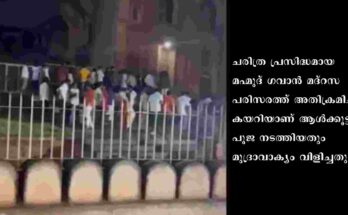 ബെംഗളൂരു: കർണാടകയിലെ ബീദറിൽ ദസറ ആഘോഷത്തിനിടെ ആൾക്കൂട്ടം മദ്റസയിൽ അതിക്രമിച്ചു കയറി പൂജ നടത്തിയെന്ന് പരാതി. ചരിത്ര പ്രസിദ്ധമായ മഹ്മൂദ് ഗവാൻ മദ്റസ പരിസരത്ത് അതിക്രമിച്ച് കയറിയാണ് ആൾക്കൂട്ടം പൂജ നടത്തിയതും മുദ്രാവാക്യം വിളിച്ചതും. 1460-കളിൽ പണികഴിപ്പിച്ച മദ്റസ ആർക്കിയോളജിക്കൽ സർവേ …