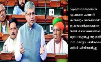 വ്യക്തിഗത ഡേറ്റാ പരിരക്ഷണ ബില് പിന്വലിച്ച് കേന്ദ്രം Read More