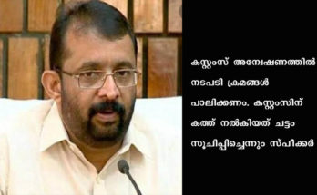 ഡോളർ കടത്ത് കേസിൽ സ്പീക്കർ പി ശ്രീരാമകൃഷ്ണനെ കസ്റ്റംസ് ചോദ്യം ചെയ്യും, ഗൾഫിൽ സ്പീക്കർക്ക് നിക്ഷേപമുണ്ടെന്നാണ് കേസിലെ പ്രതികളുടെ മൊഴി Read More