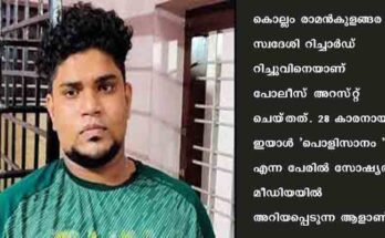 കൊല്ലം : ഇ ബുള്‍ജെറ്റ്‌ വ്‌ളോഗര്‍ സഹോദരങ്ങളെ കണ്ണൂരില്‍ അറസ്‌റ്റ് ചെയ്‌ത സംഭവവുമായി ബന്ധപ്പെട്ട്‌ സമൂഹ മാധ്യമത്തിലൂടെ പോലീസിനെ അസഭ്യം പറഞ്ഞ ആളെ പോലീസ്‌ അറസ്‌റ്റ്‌ ചെയ്‌തു. കൊല്ലം രാമന്‍കുളങ്ങര സ്വദേശി റിച്ചാര്‍ഡ്‌ റിച്ചുവിനെയാണ്‌ പോലീസ്‌ അറസ്‌റ്റ്‌ ചെയ്‌തത്‌. 28 കാരനായ …