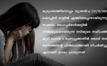 കൊച്ചിയിലെ മാളില് വച്ച് അപമാനിക്കപ്പെട്ടെന്ന് യുവനടിയുടെ വെളിപ്പെടുത്തല്; രണ്ട് ചെറുപ്പക്കാർ ശരീരത്തിൽ സ്പർശിച്ച് പിൻതുടർന്നു Read More