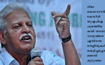 ഭീമാ കൊറേഗാവ് കേസ്, കവി വരവര റാവുവിനെതിരായ തെളിവുകള് കെട്ടിച്ചമച്ചതാണെന്ന് കുടുംബം Read More