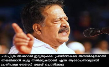 ചലച്ചിത്ര അക്കാദമി ഇടുതുപക്ഷ പ്രവര്ത്തകരെ അനധികൃതമായി നിയമിക്കാന് കൂട്ടു നില്ക്കുകയാണെന്ന് രമേശ് ചെന്നിത്തല