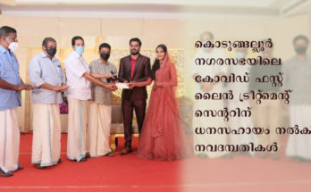 തൃശൂര് : കൊടുങ്ങല്ലൂര് നഗരസഭയിലെ കോവിഡ് ഫസ്റ്റ് ലൈന് ട്രീറ്റ്മെന്റ് സെന്ററിന് ധനസഹായം നല്കി നവദമ്പതികള്. സരിന്- ഫെയ്ഹ ദമ്പതികളാണ് തങ്ങളുടെ വിവാഹവേദിയില് വെച്ച് ട്രീറ്റ്മെന്റ് സെന്ററിന് സഹായം നല്കിയത്. തൃശൂര് മെഡിക്കല് കോളേജിലെ അഡ്മിനിസ്ട്രേറ്റീവ് അസിസ്റ്റന്റ് കറുകപ്പാടത്ത് സലീമിന്റെയും പുല്ലൂറ്റ് …