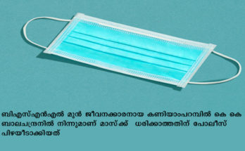 മാസ്‌ക്ക് ധരിക്കാതെ വീടിന് മുന്നിലിരുന്ന ആളിന് പിഴചുമത്തിയ കേസില്‍ പോലീസിനെതിരെ നടപടിയുമായി ബിഎസ്എന്‍എല്‍ മുന്‍ ജീവനക്കാരന്‍ Read More