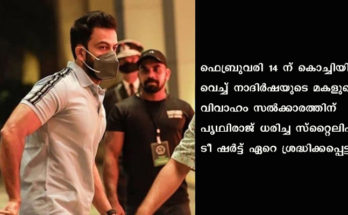 നാദിർഷയുടെ മകളുടെ വിവാഹത്തിന് പൃഥ്വിരാജ് ധരിച്ച ടീഷർട്ടിന്റെ വില 421 യൂറോ Read More