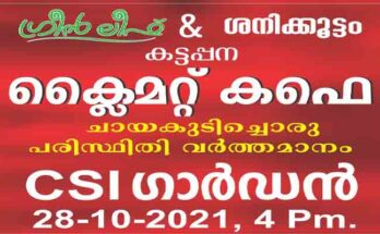 കട്ടപ്പന : ഔപചാരികതകളൊന്നുമില്ലാതെ പ്രാദേശികമായ പാരിസ്ഥിതിക പ്രശനങ്ങൾ ചർച്ച ചെയ്യുന്ന ക്ലൈമറ്റ് കഫേ എന്ന പരിപാടിയുമായി ഗസ്റ്റീൻലീഫ്. ഒക്ടോബർ 28 വ്യാഴാഴ്ച നാലുമണിക്ക് കട്ടപ്പന സിഎസ്ഐ ഗാർഡനിലാണ് പരിപാടി സംഘടിപ്പിച്ചിരിക്കുന്നത്. ആഗോള പര്സ്ഥിതി പ്രശ്നങ്ങളോ ആഴത്തിലുളള പഠന റിപ്പോർട്ടുകളോ സംവാദങ്ങളോ തർക്കങ്ങളോ …