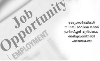 തിരുവനന്തപുരം, ചാക്ക ഗവ. ഐ.ടി.ഐയിൽ COPA, സർവേയർ, മെക്കാനിക് ഓട്ടോ ബോഡി പെയിന്റിംഗ് (MABP), പമ്പ് ഓപ്പറേറ്റർ കം മെക്കാനിക് (POCM) എന്നീ ട്രേഡുകളിലേക്ക് നിലവിലുള്ള ജൂനിയർ ഇൻസ്ട്രക്ടർമാരുടെ ഒഴിവുകളിലേക്ക് താത്കാലികമായി ഗസ്റ്റ് ഇൻസ്ട്രക്ടർമാരായി നിയമിക്കുന്നതിന് താത്പര്യമുള്ള ഉദ്യോഗാർത്ഥികൾ ജനുവരി നാലിനു …