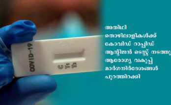 *അതിഥി തൊഴിലാളികള്‍ക്ക് കോവിഡ് റാപ്പിഡ് ആന്റിജന്‍ ടെസ്റ്റ് നടത്തും തിരുവനന്തപുരം : നാട്ടിലേക്ക് പോയ അതിഥി തൊഴിലാളികളില്‍ പലരും കേരളത്തിലേക്ക് തിരികെ വന്നുകൊണ്ടിരിക്കുന്ന സാഹചര്യത്തില്‍ ഇവര്‍ക്കുള്ള മാര്‍ഗനിര്‍ദേശങ്ങള്‍ പുറപ്പെടുവിച്ചതായി ആരോഗ്യ വകുപ്പ് മന്ത്രി കെ.കെ. ശൈലജ ടീച്ചര്‍ അറിയിച്ചു. ഇവരില്‍ പലരും …