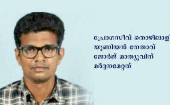 കൊച്ചി: അതിഥി തൊഴിലാളികളുടെ അവകാശങ്ങള്‍ക്കായി പ്രവര്‍ത്തിച്ചതിന് തൊഴിലാളി യൂണിയൻ നേതാവിന് മർദനമേറ്റതായി പരാതി. പ്രോഗസീവ് തൊഴിലാളി യൂണിയന്‍ നേതാവ് ജോര്‍ജ് മാത്യുവിന് മര്‍ദ്ദനമേറ്റത്. ജോര്‍ജ് മാത്യുവിനെ തട്ടിക്കൊണ്ടുപോയി മര്‍ദ്ദിച്ചവശനാക്കി ഗോഡൗണില്‍ പൂട്ടിയിടുകയായിരുന്നെന്നാണ് പരാതിയിൽ പറയുന്നത്. പെരുമ്പാവൂര്‍ കുണ്ടത്തറയിലെ ഒരു ആക്രി ഗോഡൗണിൻ്റെ …