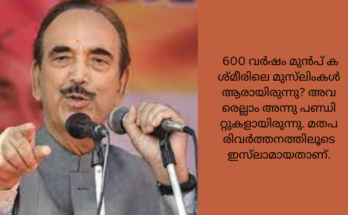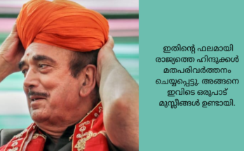 ന്യൂഡൽഹി: ഇന്ത്യയിലെ മുസ്ലിംകളിൽ ഭൂരിപക്ഷവും മതപരിവർത്തനം ചെയ്ത ഹിന്ദുക്കളാണെന്നു ജമ്മു കശ്മീർ മുൻ മുഖ്യമന്ത്രിയും ഡിപിഎപി അധ്യക്ഷനുമായ ഗുലാംനബി ആസാദ്. കശ്മീർ താഴ്വരയിലെ പണ്ഡിറ്റുകളിൽ വലിയൊരു വിഭാഗം ഇസ്ലാമിലേക്കു മാറിയത് ഇതിന് ഉദാഹരണമാണെന്നും ആസാദ് പറഞ്ഞു. മതം ഒരിക്കലും രാഷ്ട്രീയ നേട്ടത്തിനുള്ള …