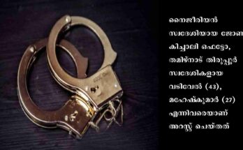 എം.ഡി.എം.എ: നൈജീരിയന് പൗരന് ഉള്പ്പെടെ 3പേര് അറസ്റ്റില് Read More