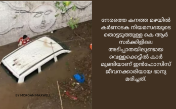 കനത്തമഴയിൽ കാർ മുങ്ങി 22 വയസുള്ള ഇൻഫോസിസ് ജീവനക്കാരി മരിച്ചു കാറിനുള്ളിൽ മരിച്ചു; ബെംഗളൂരുവിൽ കനത്ത മഴയും ഇടിമിന്നലും തുടരുന്നു. Read More