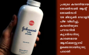 പൗഡറിൽ നിന്ന് ക്യാൻസർ; ജോൺസൺ ആന്റ് ജോൺസണ് 120 മില്യൺ ഡോളർ പിഴ വിധിച്ച് അമേരിക്കൻ കോടതി Read More