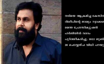 ദിലീപിന്റെ ജാമ്യം റദ്ദാക്കണമെന്ന ഹർജിയിൽ വിധി ജൂൺ 28ന് Read More