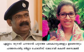ജെസ്‌ന മരിയയുടെ തിരോധാനത്തില്‍ തുറന്നുപറയാന്‍ കഴിയാത്ത പലകാര്യങ്ങളുണ്ടെന്ന്‌ പത്തനംതിട്ട ജില്ലാ പോലീസ്‌ മേധാവി കെജി സൈമണ്‍ Read More