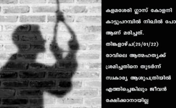 കളമശ്ശേരിയിൽ വിദ്യാര്‍ത്ഥിയെ ക്രൂരമായി മര്‍ദിച്ച ഏഴംഗ സംഘത്തില്‍ ഒരാള്‍ തൂങ്ങിമരിച്ചു Read More