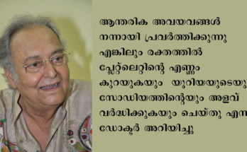 കൊല്‍ക്കത്ത: കോവിഡ് ബാധിച്ച് ചികിത്സയില്‍ തുടരുന്ന ബം​ഗാളി നടന്‍ സൗമിത്ര ചാറ്റര്‍ജിയുടെ ആരോ​ഗ്യനില വഷളാകുന്നു. അദ്ദേഹത്തിൻ്റെ ശരീരം മരുന്നുകളോട് പ്രതികരിക്കുന്നില്ലെന്നാണ് മെഡിക്കൽ റിപ്പോർട്ട്. ആന്തരിക അവയവങ്ങള്‍ നന്നായി പ്രവര്‍ത്തിക്കുന്നുണ്ടെങ്കിലും രക്തത്തിൽ പ്ലേറ്റ്‌ലെറ്റിന്റെ എണ്ണം കുറയുകയും യൂറിയയുടെയും സോഡിയത്തിന്റെയും അളവ് വര്‍ദ്ധിക്കുകയും ചെയ്തു …