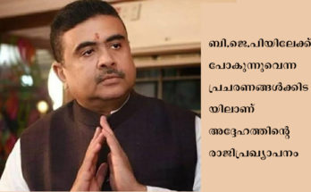 പശ്ചിമ ബംഗാളിലെ തൃണമൂല്‍ കോണ്‍ഗ്രസ് നേതാവ് സുവേന്തു അധികാരി എം.എല്‍.എ സ്ഥാനം രാജിവെച്ചതായി റിപ്പോര്‍ട്ട് Read More