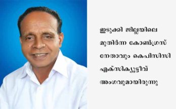 കട്ടപ്പന: ഇടുക്കി ജില്ലയിലെ മുതിര്‍ന്ന കോണ്‍ഗ്രസ്‌ നേതാവും, പാമ്പാടുംപാറ പഞ്ചായത്ത് മുന്‍ പ്രസിഡന്‍റും, കെപിസിസി എക്‌സിക്യൂട്ടീവ്‌ അംഗവുമായ ശ്രീമന്ദിരം ശശികുമാര്‍ (70)അന്തരിച്ചു. കോട്ടയം മെഡിക്കല്‍ കോളേജില്‍ വച്ചായിരുന്നു അന്ത്യം. പാമ്പാടുംപാറ പഞ്ചായത്ത്‌ പ്രസിഡന്‍റായി പ്രവര്‍ത്തിച്ചിട്ടുണ്ട്. സംസ്കാരം 20.03.2021 ശനിയാഴ്ച വീട്ടുവളപ്പില്‍. ‌
