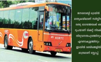 തിരുവനന്തപുരം: കെഎസ്ആർടിസിയുടെ എൻഡ് ടു എൻഡ് സർവ്വീസായ ജനശതാബ്ദി സർവ്വീസ് തുടങങ്ങി. എറണാകുളം-തിരുവനന്തപുരം ലോ ഫ്ളോർ ബസാണ് ഓടിത്തുടങ്ങിയത്. ജനശതാബ്ദി ട്രെയിൻ മാതൃകയിലാണ് സർവ്വീസ്. ഒരു ഭാഗത്തേയക്ക് 408 രൂപയാണ് ടിക്കറ്റ് നിരക്ക്. തിരുവനന്തപുരത്തിനും എറണാകുളത്തിനും ഇടയിൽ രണ്ടിടങ്ങളിൽ മാത്രമാണ് സ്റ്റോപ്പ്. …