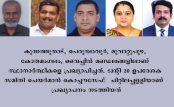 ട്വന്റി20 എറണാകുളത്തെ 5 ഇടങ്ങളിലേക്കുളള സ്ഥാനാര്ത്ഥികളെ പ്രഖ്യാപിച്ചു Read More