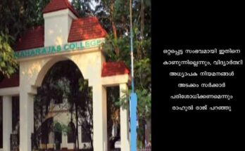 തിരുവനന്തപുരം: മഹാരാജാസ് കോളേജിലെ വ്യാജരേഖാ വിവാദം അപമാനം ഉണ്ടാക്കുന്നതാണെന്ന് എഐഎസ്എഫ് സംസ്ഥാന പ്രസിഡന്റ് ആർ എസ് രാഹുൽ രാജ്. ഒറ്റപ്പെട്ട സംഭവമായി ഇതിനെ കാണുന്നില്ലെന്നും , വിദ്യാർത്ഥി അധ്യാപക നിയമനങ്ങൾ അടക്കം സർക്കാർ പരിശോധിക്കണമെന്നും രാഹുൽ രാജ് പറഞ്ഞു. വ്യാജരേഖാ വിവാദത്തിൽ …